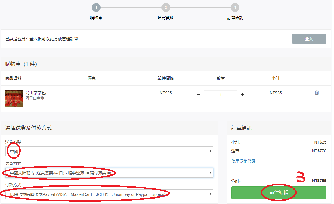 3.确认您的购买资讯后,请选择信用卡付款方式。