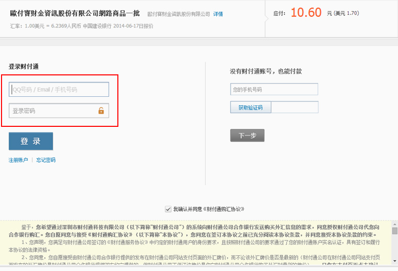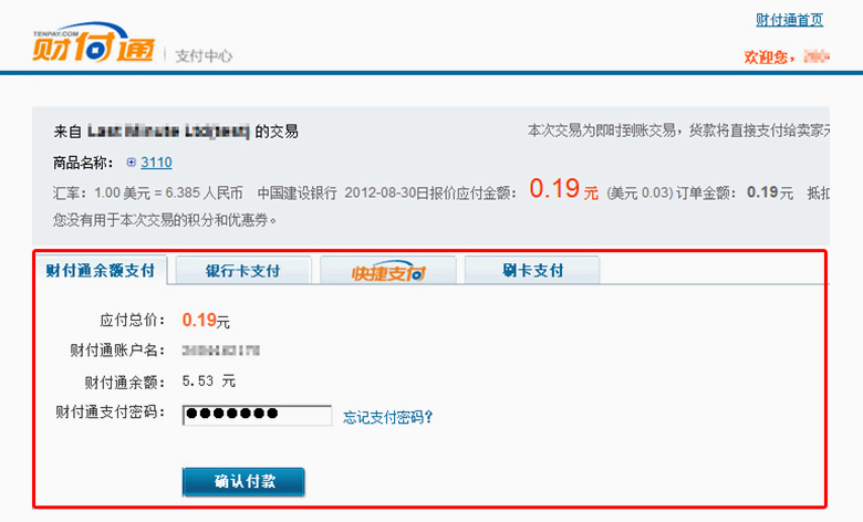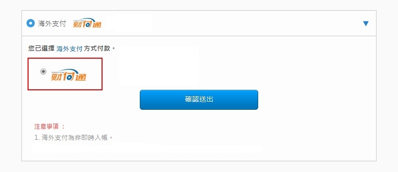 (注意!財付通為非即時交易,有時須等待1-2個工作日才會於歐付寶訂單頁面顯示付款成功。)